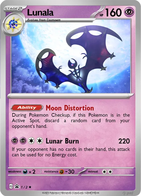 During Pokemon Checkup, if this Pokemon is in the Active Spot, discard a random card from your opponent's hand.Lunar Burn • 220