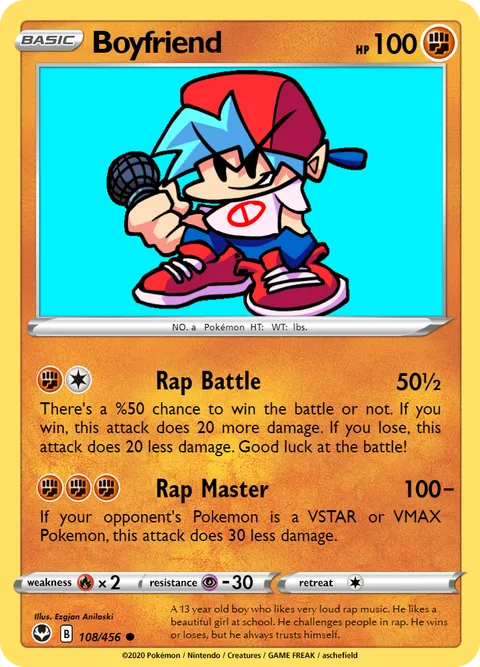 NO. a Pokémon HT: WT: lbs.illus. Ezgjan Aniloski#108/456A 13 year old boy who likes very loud rap music. He likes a beautiful girl at school. He challenges people in rap. He wins or loses, but he always trusts himself.Created by @EzgjanAniloski25 on 19 November 2023Includes assets by Creatures Inc.