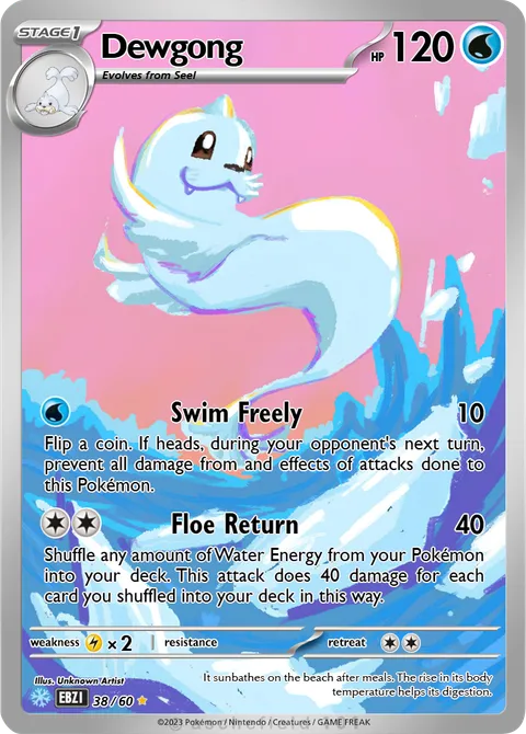 illus. Unknown Artist#38/60It sunbathes on the beach after meals. The rise in its body temperature helps its digestion.Created by @FaBRyXoN99 on 18 June 2025Includes assets by Creatures Inc.