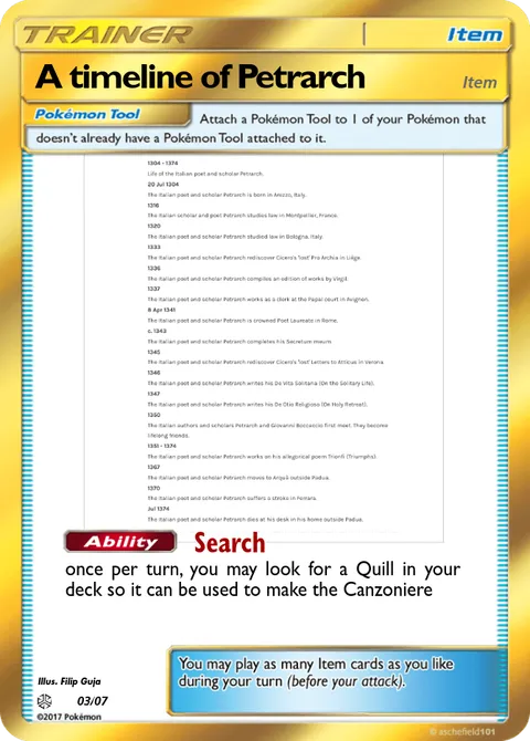 once per turn, you may look for a Quill in your deck so it can be used to make the Canzoniere