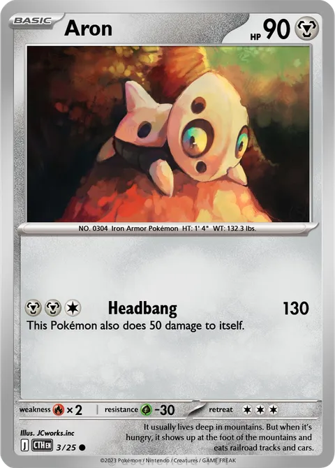 NO. 0304 Iron Armor Pokémon HT: 1' 4" WT: 132.3 lbs.illus. JCworks.inc#3/25It usually lives deep in mountains. But when it’s hungry, it shows up at the foot of the mountains and eats railroad tracks and cars.Created by @FrankoTheCat on 17 January 2026, last edited on 19 January 2026