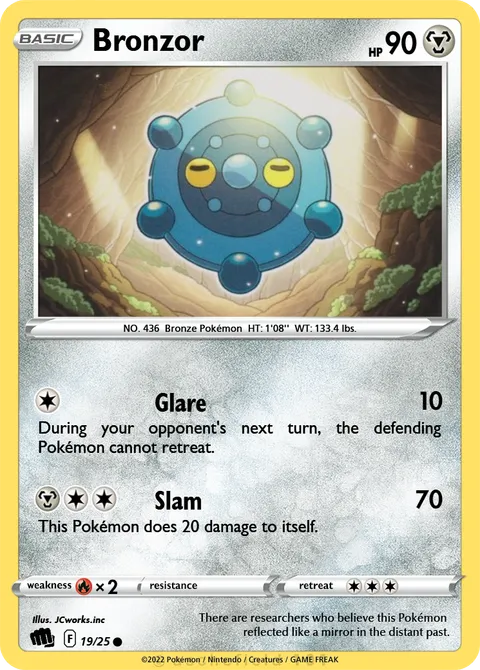 NO. 436 Bronze Pokémon HT: 1'08'' WT: 133.4 lbs.illus. JCworks.inc#19/25There are researchers who believe this Pokémon reflected like a mirror in the distant past.Created by @FrankoTheCat on 21 December 2025