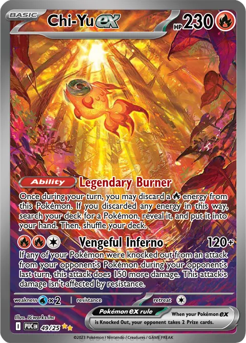 Once during your turn, you may discard a R energy from this Pokémon. If you discarded any energy in this way, search your deck for a Pokémon, reveal it, and put it into your hand. Then, shuffle your deck.Vengeful Inferno • 120+