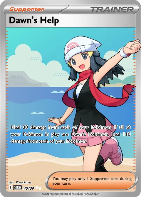 Heal 30 damage from each of your Pokémon. If all of your Pokémon in play are Dawn's Pokémon, heal 110 damage from each of your Pokémon.