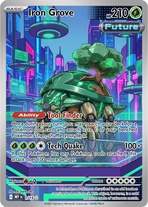 Once during your turn, you may search your deck for a Pokémon tool card and attach it to 1 of your benched Pokémon. Then, shuffle your deck.Tech Quake • 100+