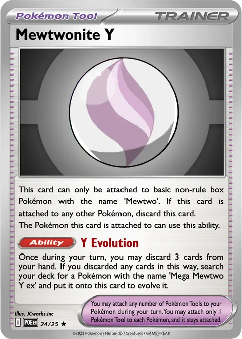 Once during your turn, you may discard 3 cards from your hand. If you discarded any cards in this way, search your deck for a Pokémon with the name 'Mega Mewtwo Y ex' and put it onto this card to evolve it.Created by @FrankoTheCat on 01 January 2026