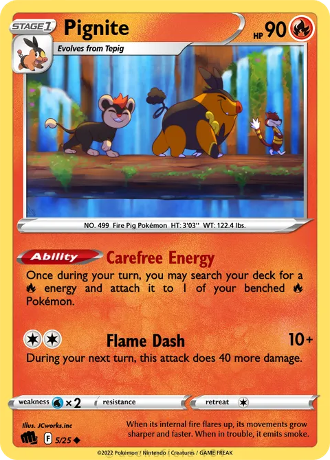 Once during your turn, you may search your deck for a R energy and attach it to 1 of your benched R Pokémon.Flame Dash • 10+