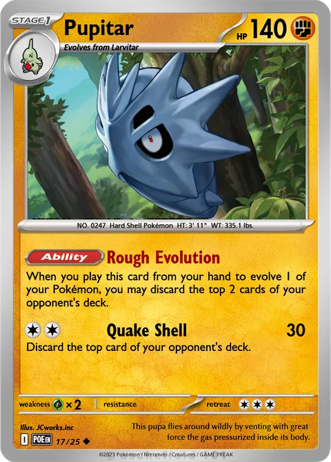 When you play this card from your hand to evolve 1 of your Pokémon, you may discard the top 2 cards of your opponent's deck.Quake Shell • 30