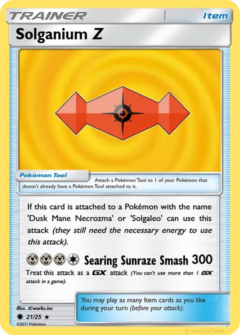 If this card is attached to a Pokémon with the name 'Dusk Mane Necrozma' or 'Solgaleo' can use this attack (they still need the necessary energy to use this attack).