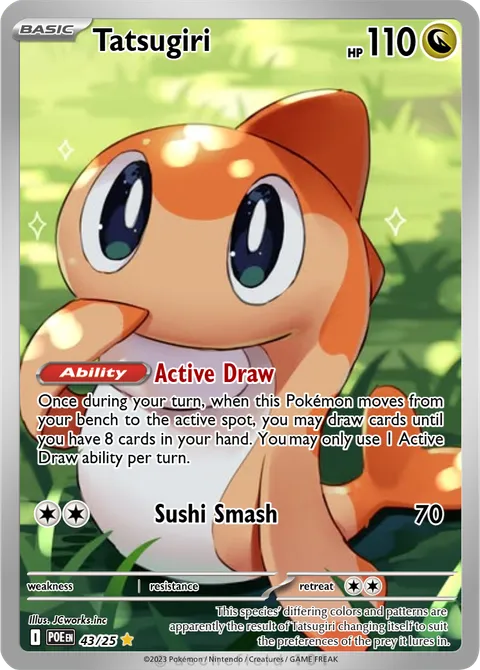 Once during your turn, when this Pokémon moves from your bench to the active spot, you may draw cards until you have 8 cards in your hand. You may only use 1 Active Draw ability per turn.Sushi Smash • 70
