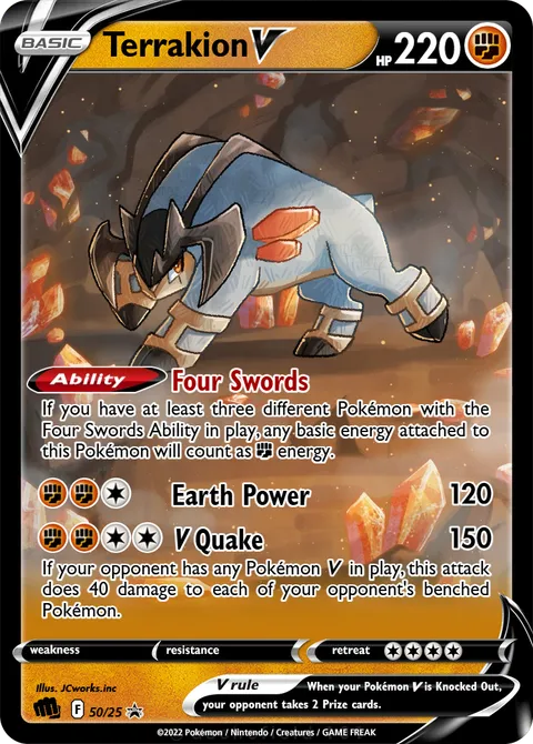 If you have at least three different Pokémon with the Four Swords Ability in play, any basic energy attached to this Pokémon will count as F energy.Earth Power • 120