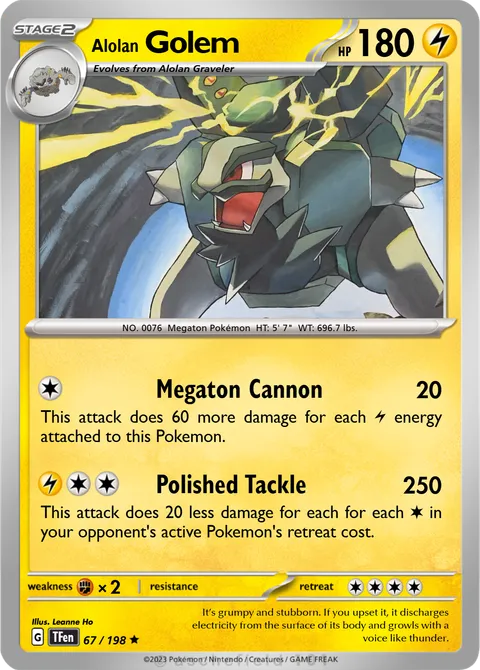 NO. 0076 Megaton Pokémon HT: 5' 7" WT: 696.7 lbs.illus. Leanne Ho#67/198It’s grumpy and stubborn. If you upset it, it discharges electricity from the surface of its body and growls with a voice like thunder.Created by @Garchamp57 on 25 May 2025