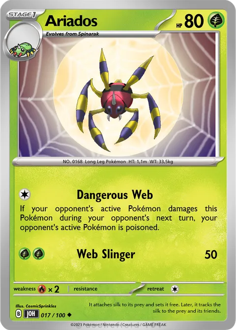 NO. 0168 Long Leg Pokémon HT: 1,1m WT: 33,5kgillus. CosmicSprinkles#017/100It attaches silk to its prey and sets it free. Later, it tracks the silk to the prey and its friends.Created by @GavinGengar on 25 January 2025