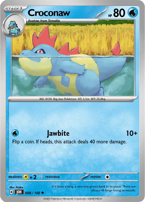 NO. 0159 Big Jaw Pokémon HT: 1,1m WT: 25,0kgillus. Psidra#008/100If it loses a fang, a new one grows back in its place. There are always 48 fangs lining its mouth.Created by @GavinGengar on 24 January 2025