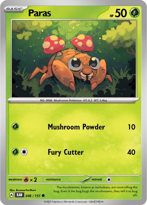 NO. 0046 Mushroom Pokémon HT: 0,3 WT: 5,4kg
