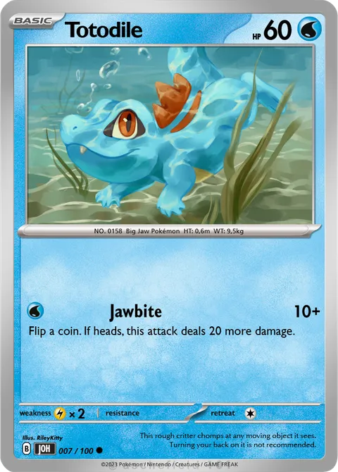 NO. 0158 Big Jaw Pokémon HT: 0,6m WT: 9,5kgillus. RileyKitty#007/100This rough critter chomps at any moving object it sees. Turning your back on it is not recommended.Created by @GavinGengar on 24 January 2025