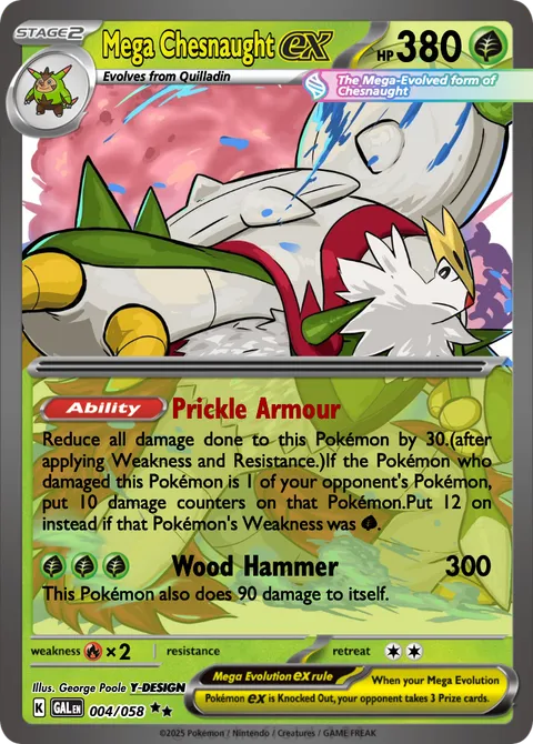 Reduce all damage done to this Pokémon by 30.(after applying Weakness and Resistance.)If the Pokémon who damaged this Pokémon is 1 of your opponent's Pokémon, put 10 damage counters on that Pokémon.Put 12 on instead if that Pokémon's Weakness was G.
