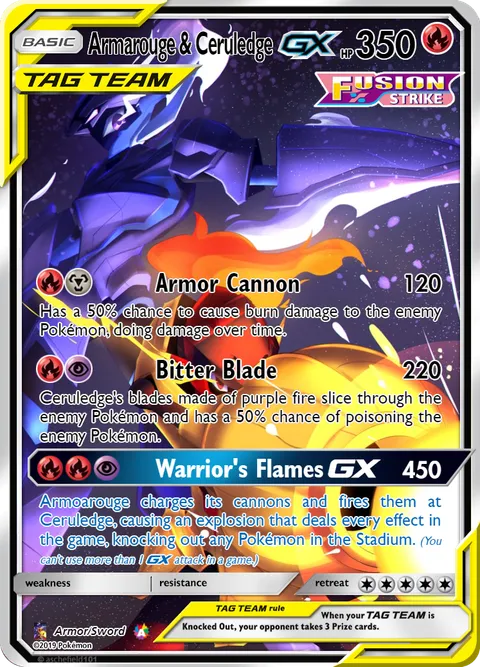 Armoarouge charges its cannons and fires them at Ceruledge, causing an explosion that deals every effect in the game, knocking out any Pokémon in the Stadium.