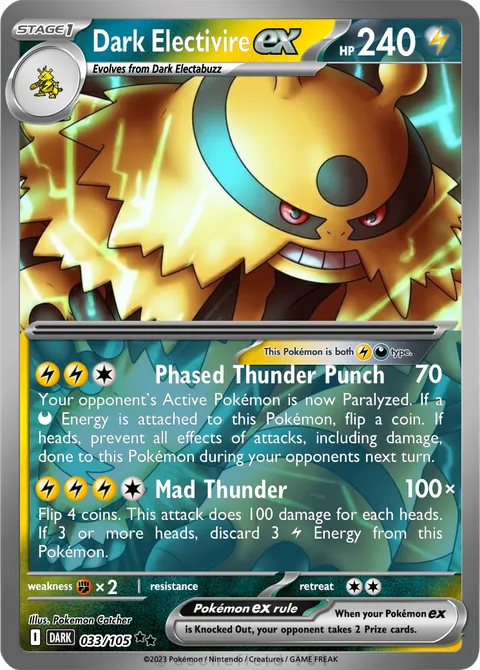 Your opponent’s Active Pokémon is now Paralyzed. If a D Energy is attached to this Pokémon, flip a coin. If heads, prevent all effects of attacks, including damage, done to this Pokémon during your opponents next turn.