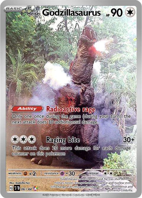 Only one once during the game (during your turn), the next attack does 30 addiotionnal damage.Raging bite • 30+