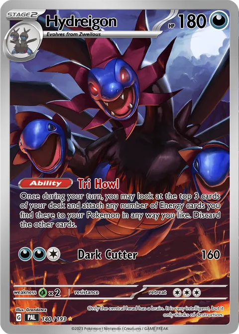 illus. Grandetex#140/193Only the central head has a brain. It is very intelligent, but it only thinks of destruction.Created by @Grandetex on 06 November 2024Includes assets by Creatures Inc.