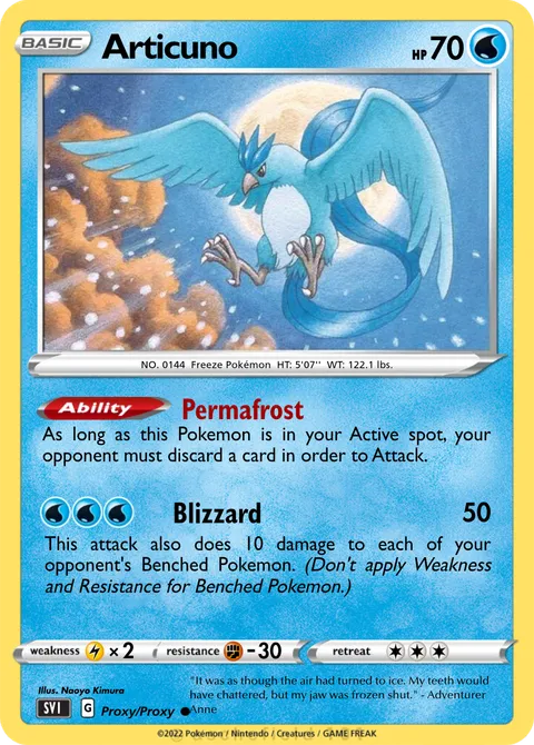 As long as this Pokemon is in your Active spot, your opponent must discard a card in order to Attack.Blizzard • 50
