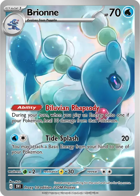 During your turn, when you play an Energy onto one if your Pokemon, heal 10 damage from that Pokemon.Tide Splash • 20