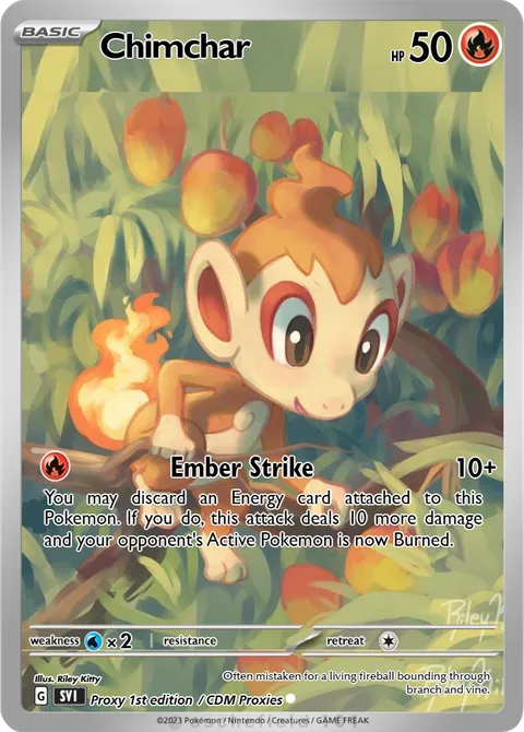 NO. 0390 Chimp Pokémon HT: 1'08'' WT: 13.7 lbs.illus. Riley Kitty#Proxy 1st edition/CDM ProxiesOften mistaken for a living fireball bounding through branch and vine.Created by @Hadran117 on 27 February 2025