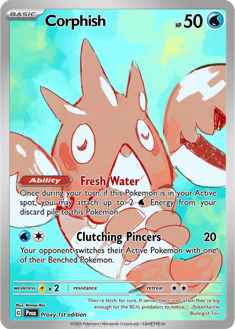 illus. Rinnai-Rai#Proxy 1st edition"They're feisty for sure. It serves them well when they're big enough for the REAL predators to notice." - PokeMarine Biologist Tori