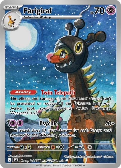The effects and damage of this Pokemons' attacks can't be prevented or reduced. If this Pokemon is in your Acrive spot, your opponents Active Pokemon's Weakness is x3.Psychic • 20+