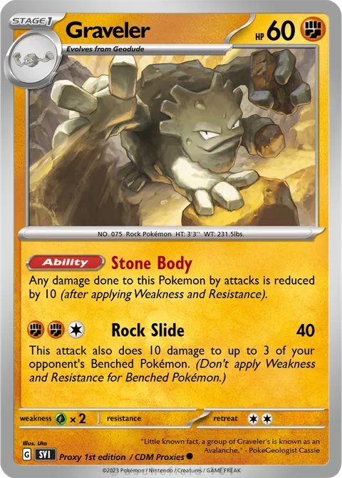 Any damage done to this Pokemon by attacks is reduced by 10 (after applying Weakness and Resistance).Rock Slide • 40
