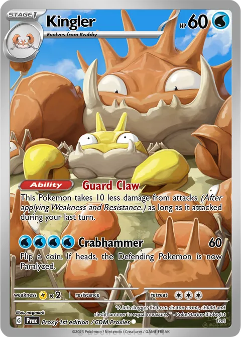 This Pokemon takes 10 less damage from attacks (After applying Weakness and Resistance.) as long as it attacked during your last turn.Crabhammer • 60