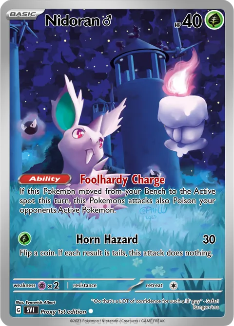 If this Pokemon moved from your Bench to the Active spot this turn, this Pokemons attacks also Poison your opponents Active Pokemon.Horn Hazard • 30