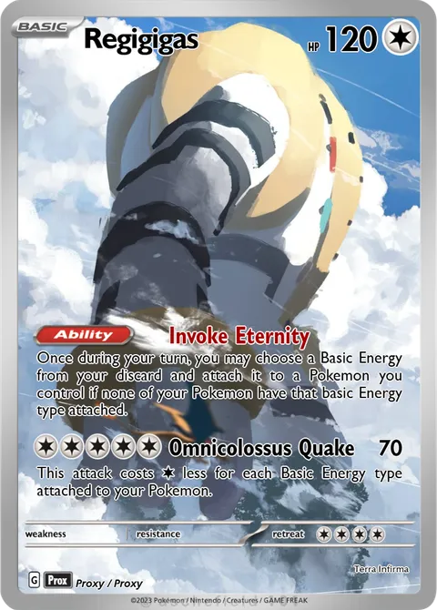 Once during your turn, you may choose a Basic Energy from your discard and attach it to a Pokemon you control if none of your Pokemon have that basic Energy type attached.Omnicolossus Quake • 70