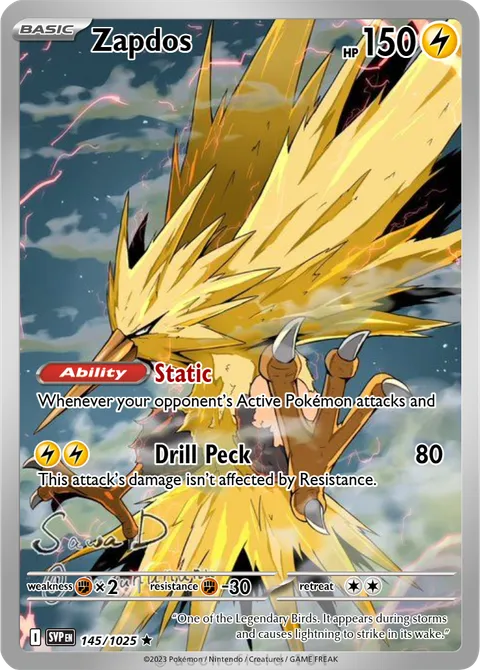 “One of the Legendary Birds. It appears during storms and causes lightning to strike in its wake.”