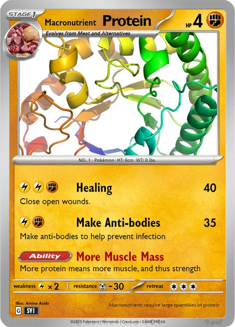 NO. 1   Pokémon  HT: 0cm  WT: 0 lbs.illus. Amino AcidsMacronutrient: require large quantities of protein