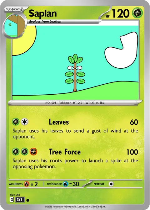 Saplan uses his leaves to send a gust of wind at the opponent.