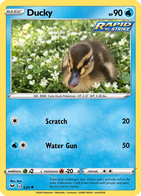 NO. 9000 Cute Duck Pokémon HT: 2.37 WT: 3.28 lbs.