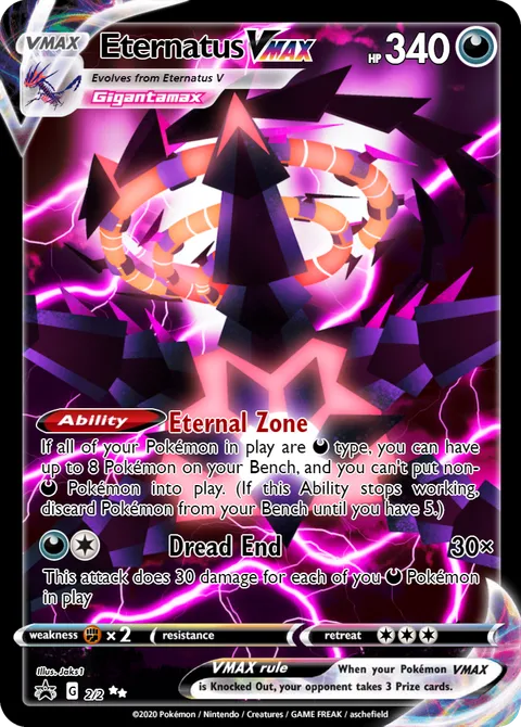 If all of your Pokémon in play are D type, you can have up to 8 Pokémon on your Bench, and you can't put non- D Pokémon into play. (If this Ability stops working, discard Pokémon from your Bench until you have 5.)