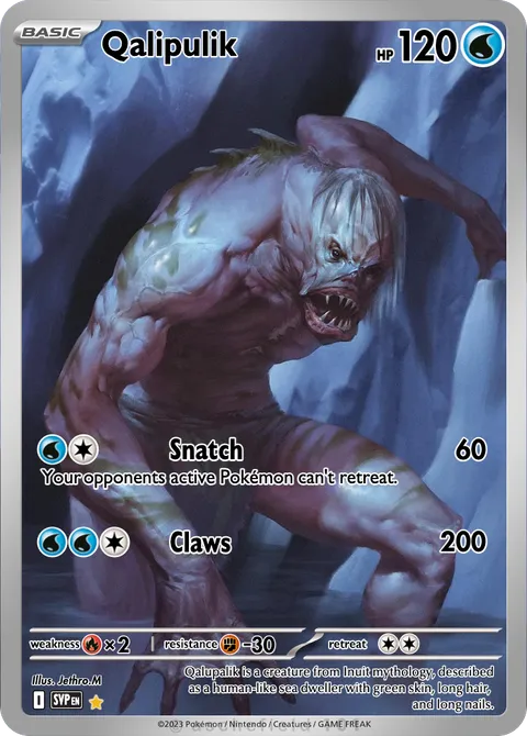 Qalupalik is a creature from Inuit mythology, described as a human-like sea dweller with green skin, long hair, and long nails.