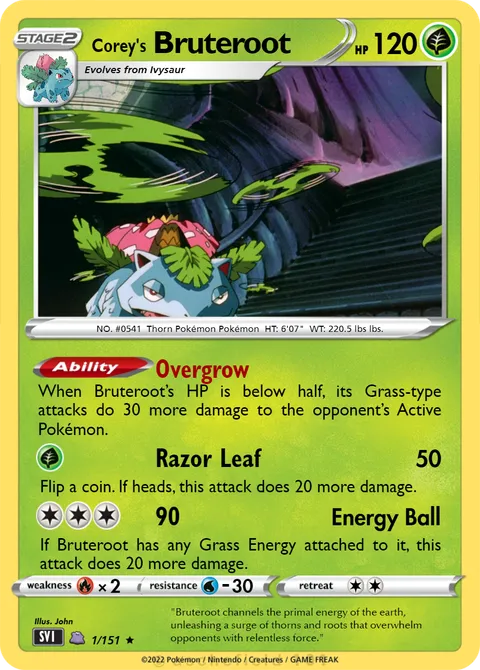 When Bruteroot’s HP is below half, its Grass-type attacks do 30 more damage to the opponent’s Active Pokémon.