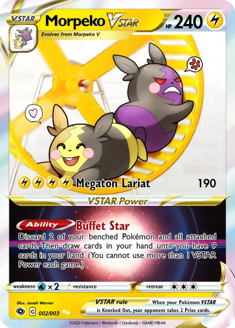 Discard 2 of your benched Pokémon and all attached cards. Then draw cards in your hand until you have 9 cards in your hand. (You cannot use more than 1 VSTAR Power each game.)Weakness: