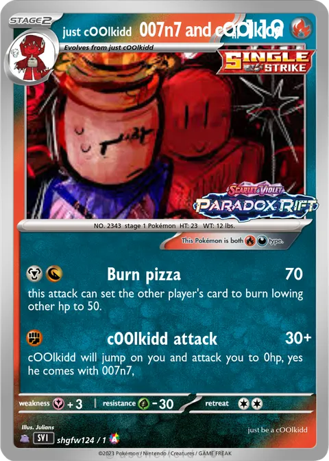 cOOlkidd will jump on you and attack you to 0hp, yes he comes with 007n7,