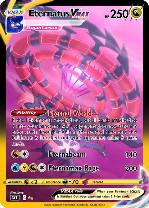 If this Pokémon is knocked out, put all cards attached to it into your hand, and your opponent does not take any prize cards. Though if this is the second time that this Pokémon is knocked out, your opponent takes 3 prize cards.Eternabeam • 140
