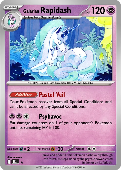 NO. 0078 Unique Horn Pokémon HT: 5'7" WT: 176.4 lbs.illus. ameruuBrave and prideful, this Pokémon dashes airily through the forest, its steps aided by the psychic power stored in the fur on its fetlocks.Created by @Kakaroku67 on 15 March 2026, last edited on 24 March 2026Includes assets by Creatures Inc.
