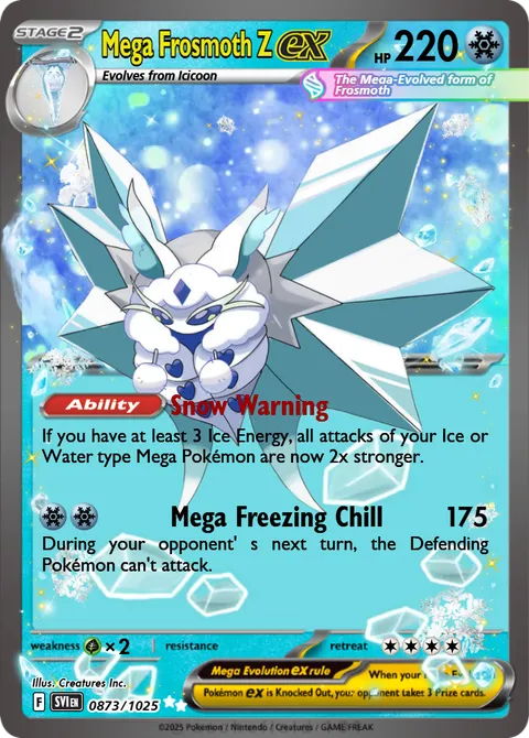 If you have at least 3 Ice Energy, all attacks of your Ice or Water type Mega Pokémon are now 2x stronger.