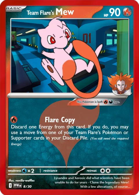 illus. vanilla-waffles#8/30Lysandre and Xerosic did what scientists have been unable to do for years - Clone the legendary Mew! With a few alterations, of course...Created by @Kiba on 07 November 2025