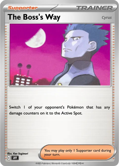 Switch 1 of your opponent's Pokémon that has any damage counters on it to the Active Spot.