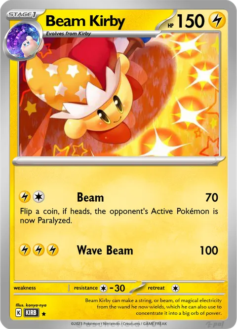 illus. konya-nyaBeam Kirby can make a string, or beam, of magical electricity from the wand he now wields, which he can also use to concentrate it into a big orb of power.Created by @Kryptonite on 12 December 2023