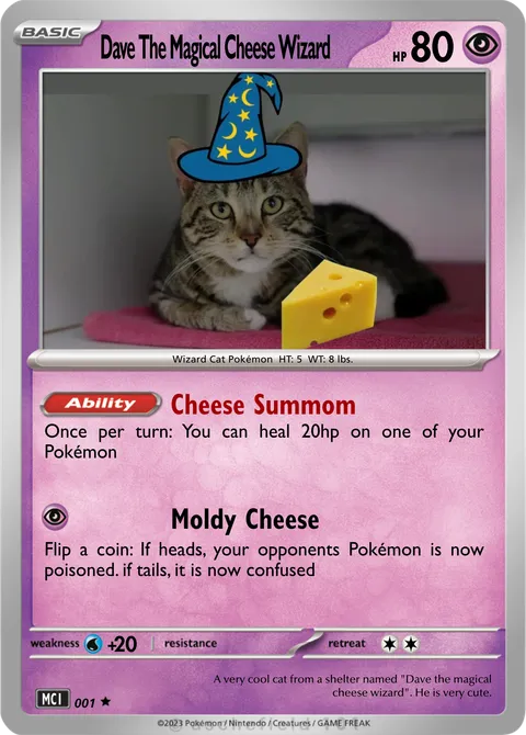 A very cool cat from a shelter named "Dave the magical cheese wizard". He is very cute.